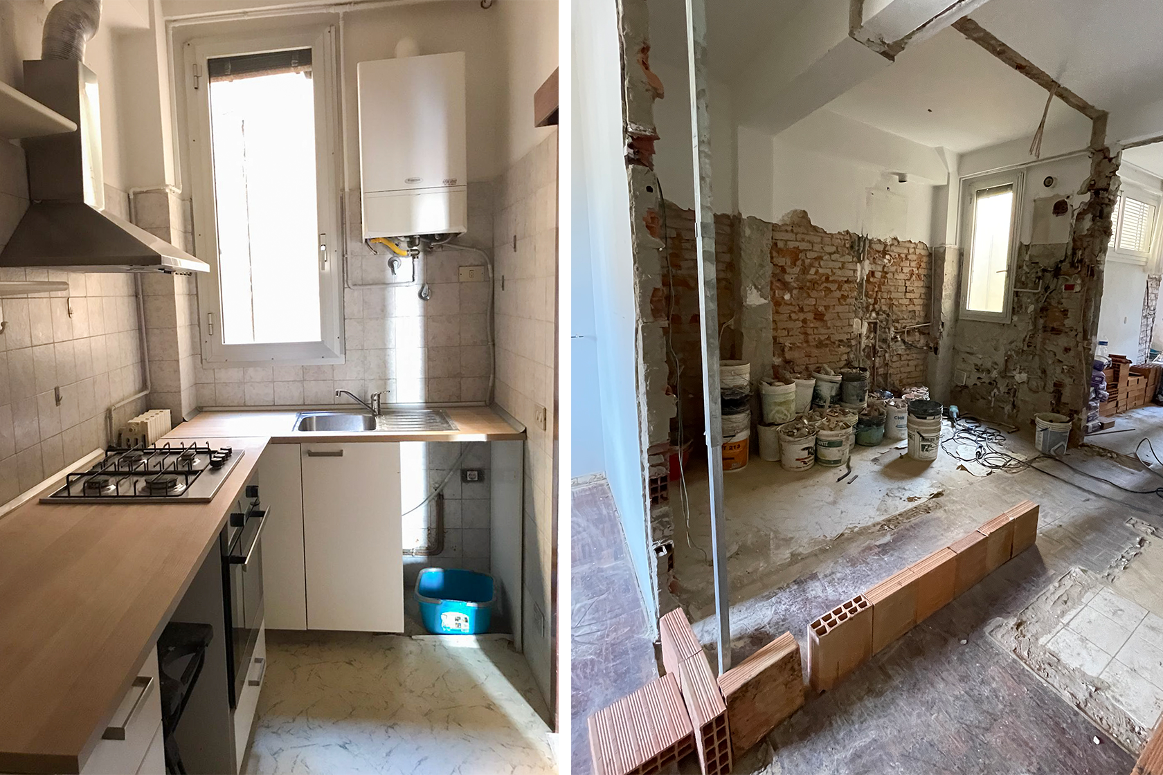 We’re fans of the open-plan design since it’s just plain easier, but also because we know that when you’re in Italy you want to relax and spend time with family and friends. Or simply enjoy easy access to that fabulous terrace. There are so many reasons why moving the kitchen closer to the dining area and the terrace just made sense. But even we were blown away by how beautiful it turned out. Are you ready to see the big transformation?