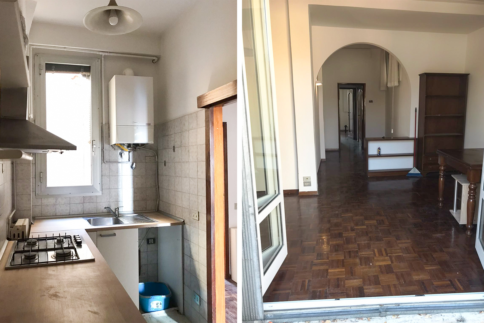 BEFORE: The original kitchen (LEFT) was opened to create a second bedroom (RIGHT).