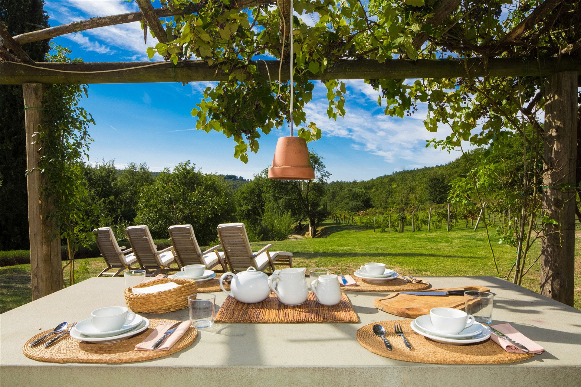 We are so pleased to introduce a beautiful new offering to our villa portfolio! Riposo Verde is a fine Tuscany restored farmhouse with resplendent views, and elegant decor to match. It is set among 5 acres of beautiful gardens, vineyards, olive orchards and fruit trees. A tranquil setting just minutes drive from the scenic town of San Casciano dei Bagni, Villa Riposo Verde is a wonderful holiday retreat.