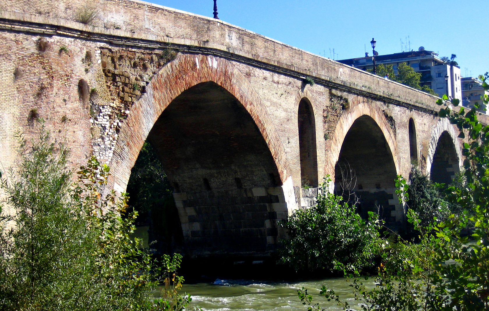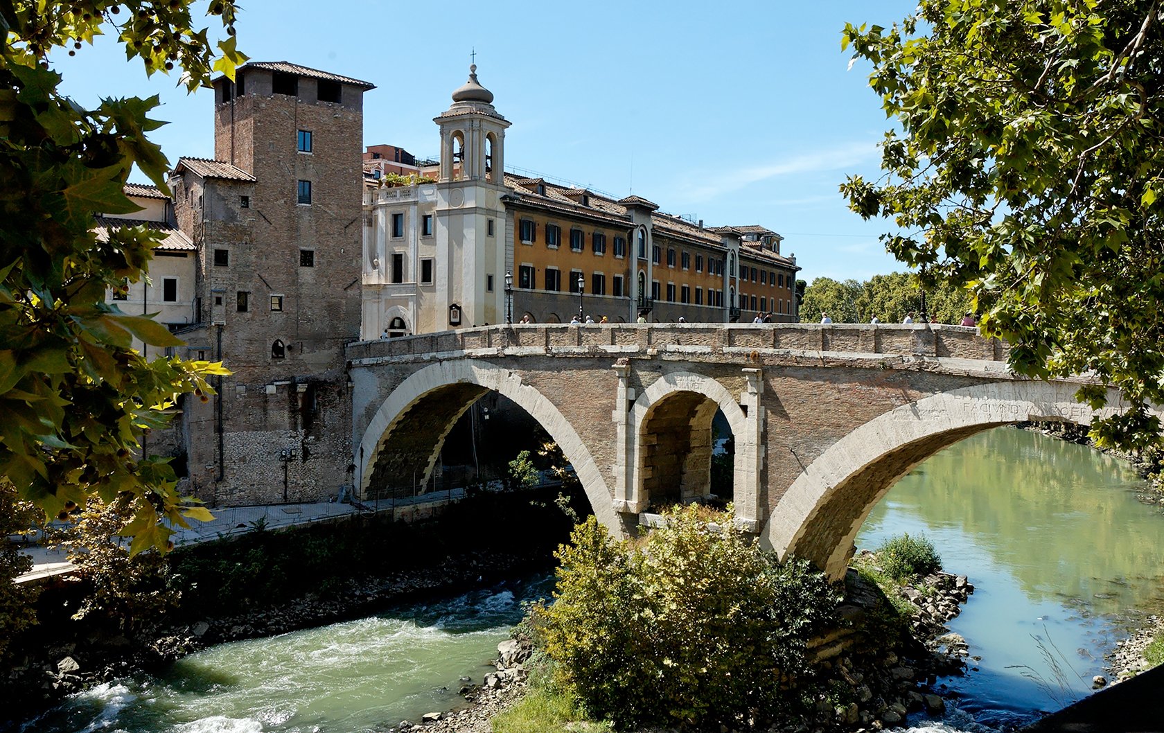 There’s no better place to start an exploration of Rome’s bridges than at the Isola Tiberina, the island in the Tiber located between the ancient center of the city and Trastevere. Here’s where you’ll find Ponte Fabrizio, which was constructed in 62 BC. Incredible to imagine! That date makes it the oldest bridge not only in Rome but also the world that is still in its original state and in continuous use. The Romans were well known for their bridge building skills, and it’s a remarkable experience to walk over this piece of Roman history. Just take a moment while there to stop and reflect on how much has happened right in this spot in over two thousand years.