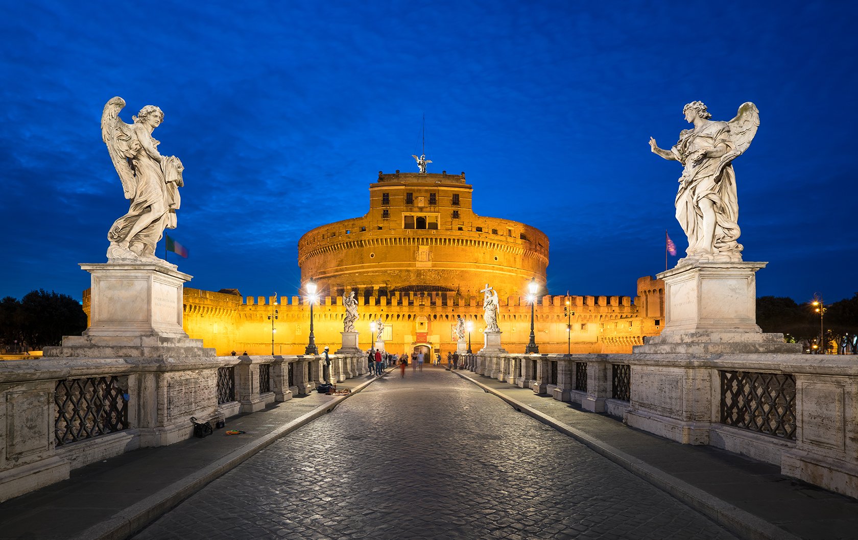 In 1669, Pope Clement IX commissioned a series of 10 statues of angels holding instruments of the Passion of Christ. These impressively sized statues have given the bridge its nickname as the Bridge of Angels. The first two to be designed were created by the Baroque architect Bernini and were among his last works. His statues were considered so beautiful that Pope Clement IX kept them for his private collection and they’re now found in Sant’Andrea delle Fratte, a very nice church near the Spanish Steps. The Bernini designed statues on the bridge are copies of the original. The rest of the angel statues were created by many of Bernini’s talented students. Now Ponte Sant’Angelo is a pedestrian only bridge, which is ideal for viewing the statues and surrounding Roman landscape. It’s stunning from every angle! Our Viola apartment is only a short walk from Pont Sant’Angelo, so you can admire the bridge during the day and also lit up at night.
